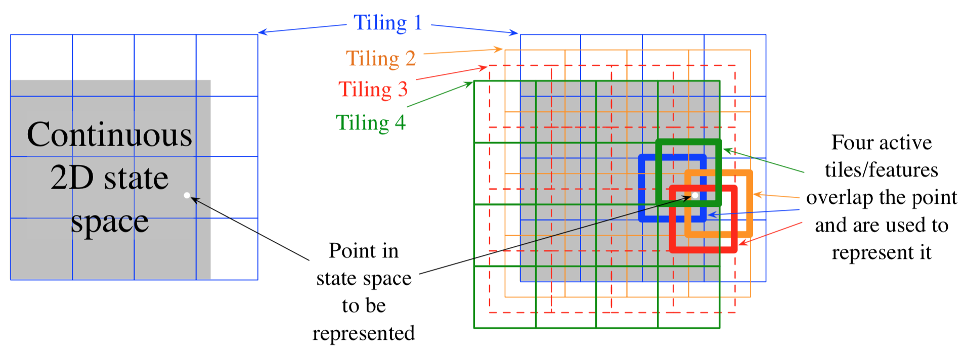 Exercise 9.1 page 209. How are the tabular methods special cases of linear function approximation. What is \(\mathbf{x}(s)\)?